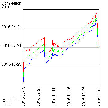 Squinting at the right side you’ll notice the dramatic 2-3 month pull-in of the completion date in the last couple of days. Well, after the third straight month of push outs this time for no easily explainable reason I did a quick estimate of the expected completion date by hand on an envelope and found it to be near the beginning of March. Much closer than the scheduler was predicting. After a quick perusal of the scheduler’s code a bug was found and crushed, and henceforth schedules will be ‘totally accurate’. Well they’ll at least be somewhat more predictive at least.